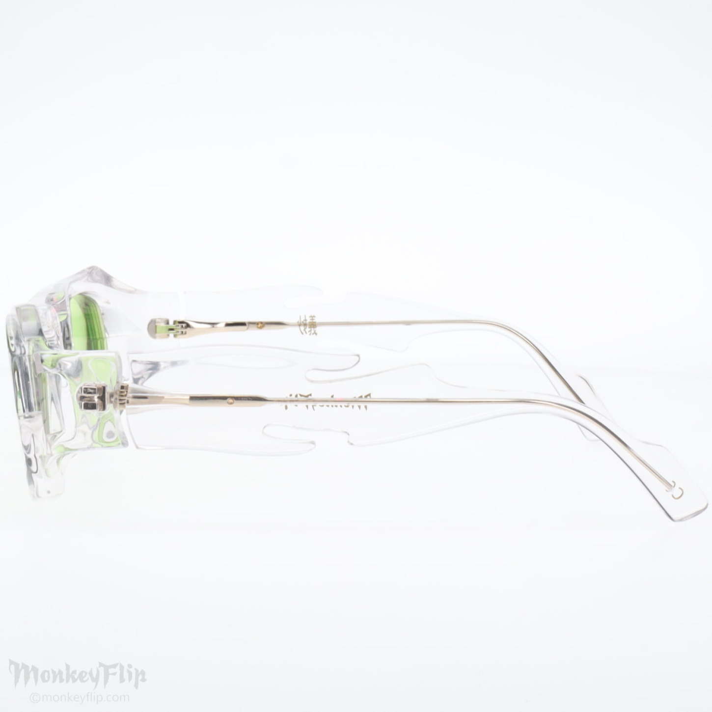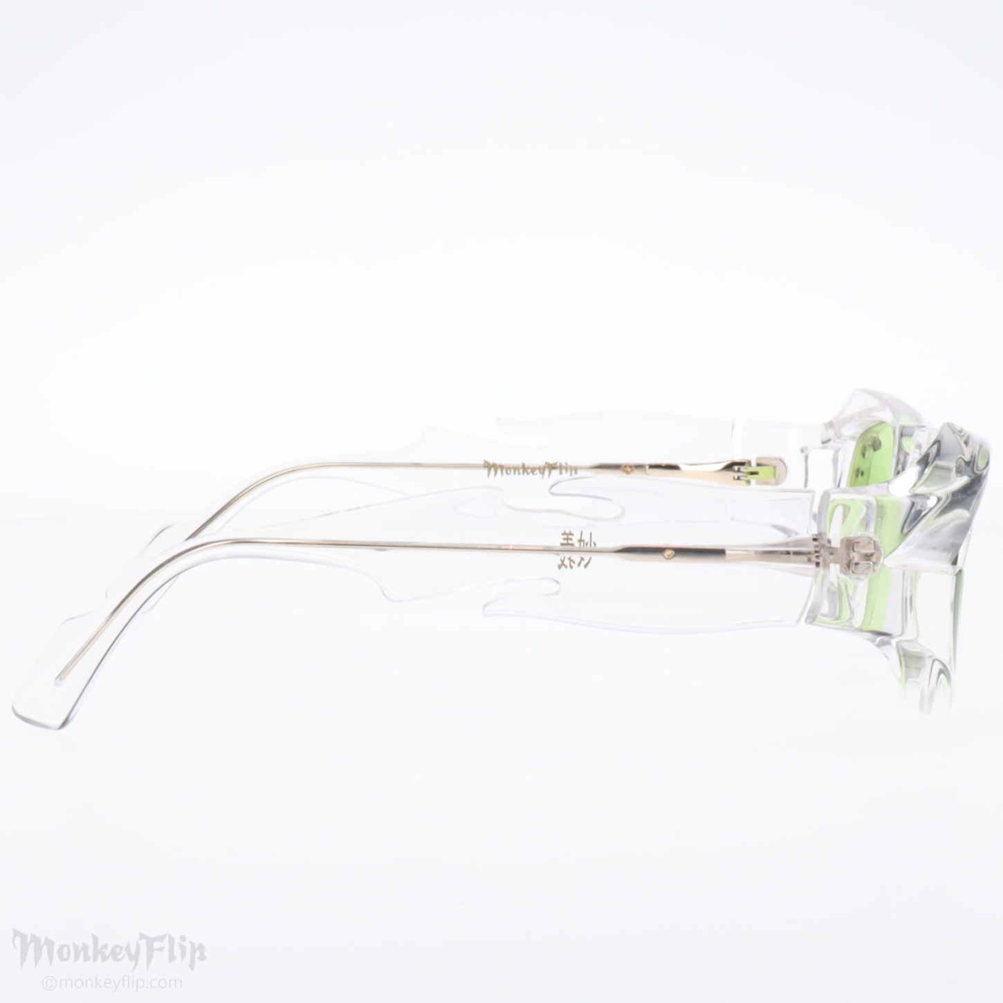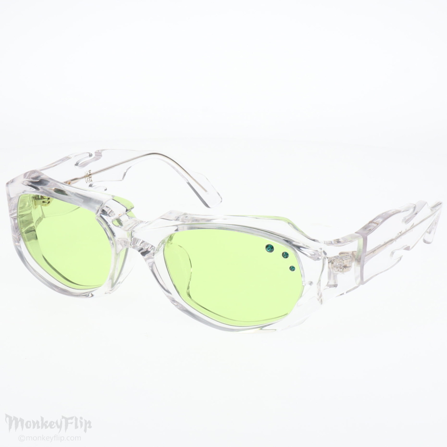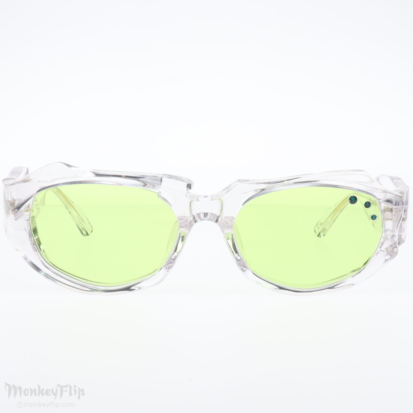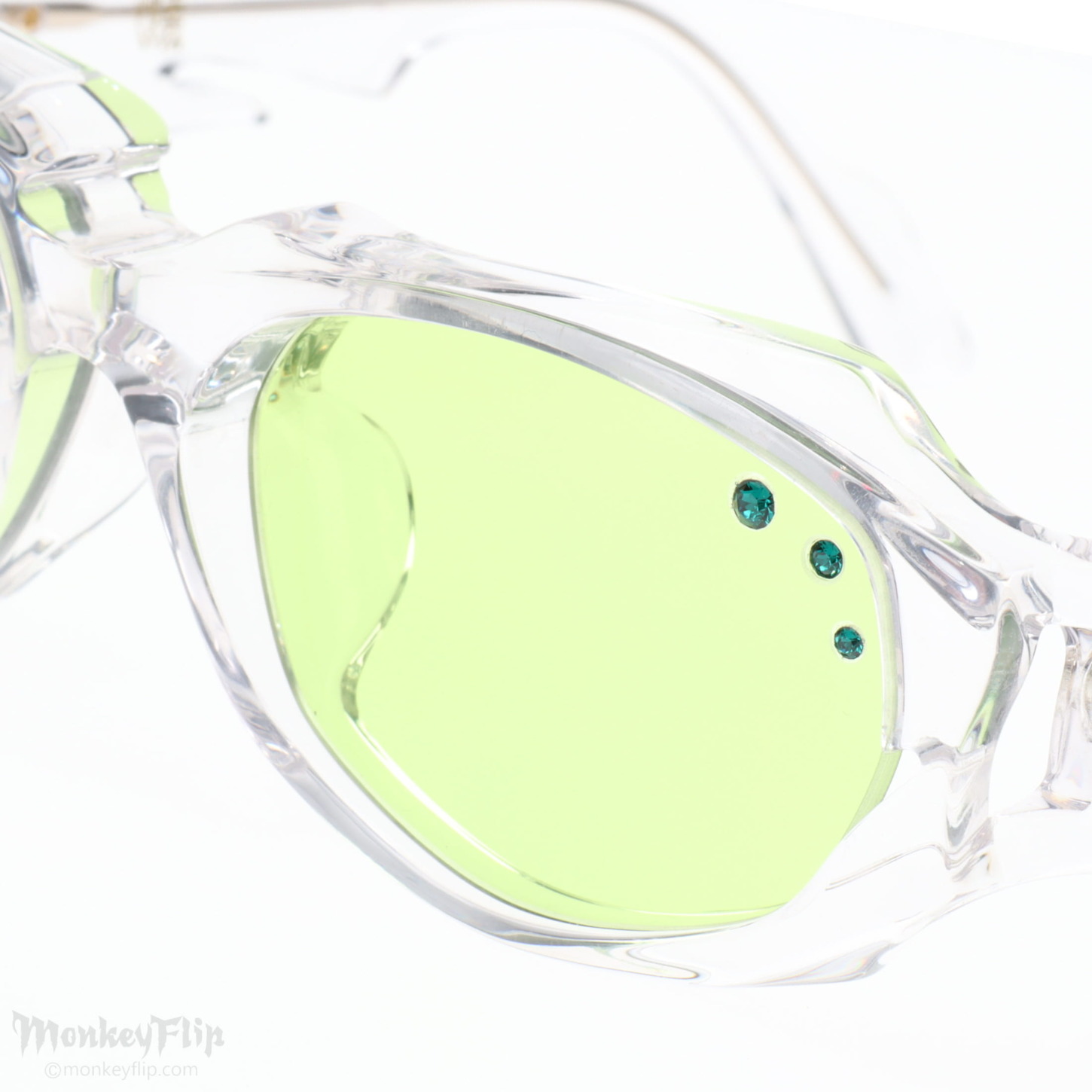 ボリュームのあるクリアフレームに鮮やかなライムグリーンのレンズ。
