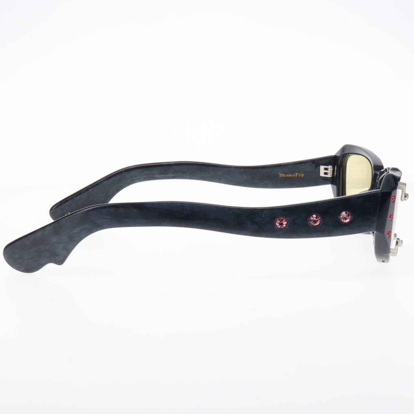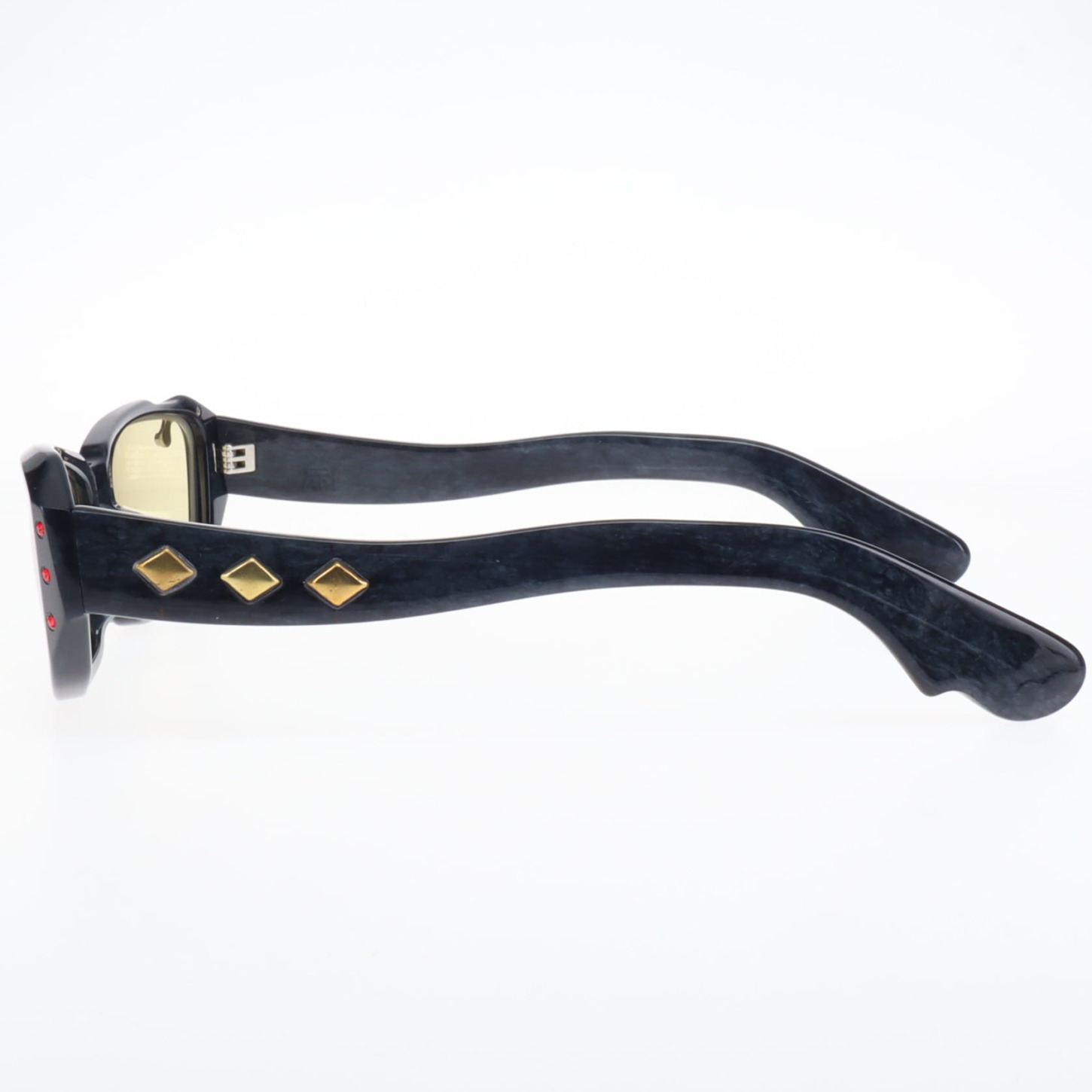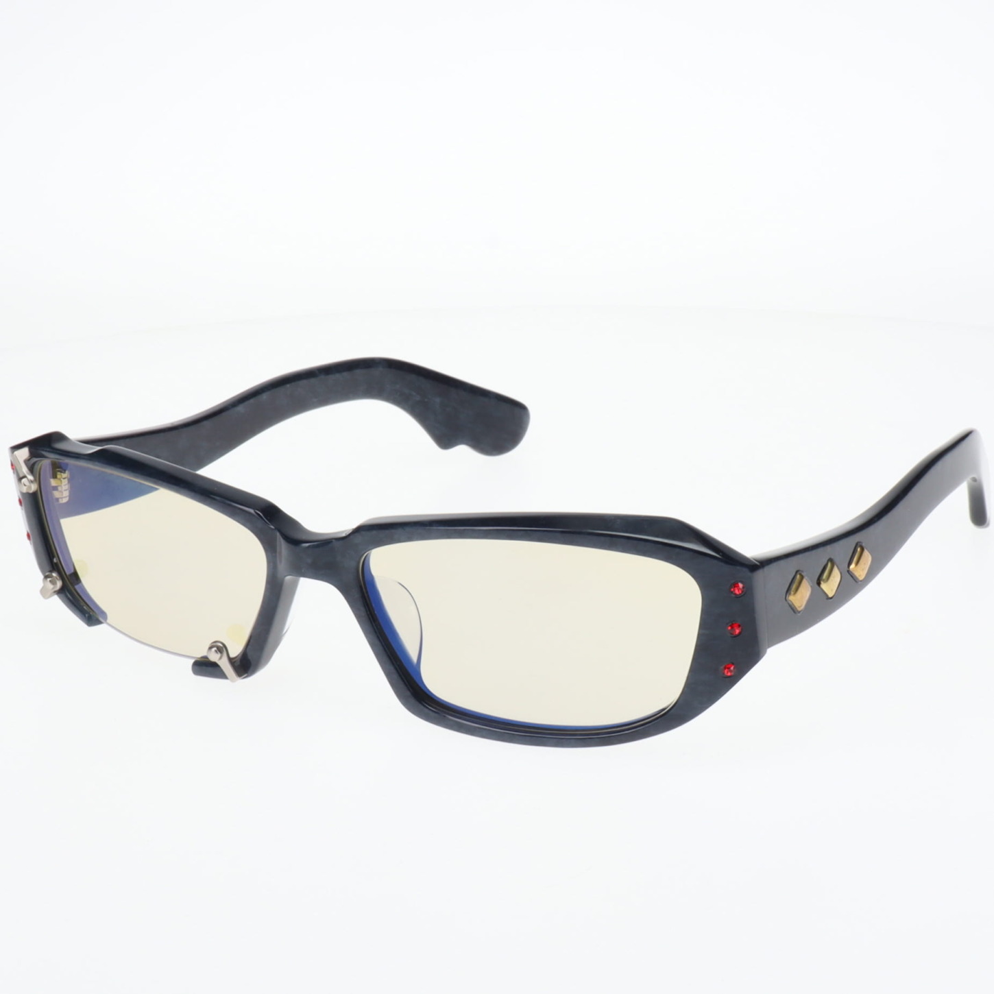 カスタム016 2026.02.09 フレーム:斎 C.4 カスタム: スタッズ , ラインストーン ラインストーンとスタッズを用いたカスタム赤とピンクのラインストーンが妖しく光りゴールドスタッズがクールにフレームを彩る スタッズ GALLERYアーカイブ PREVIOUS NEXT
