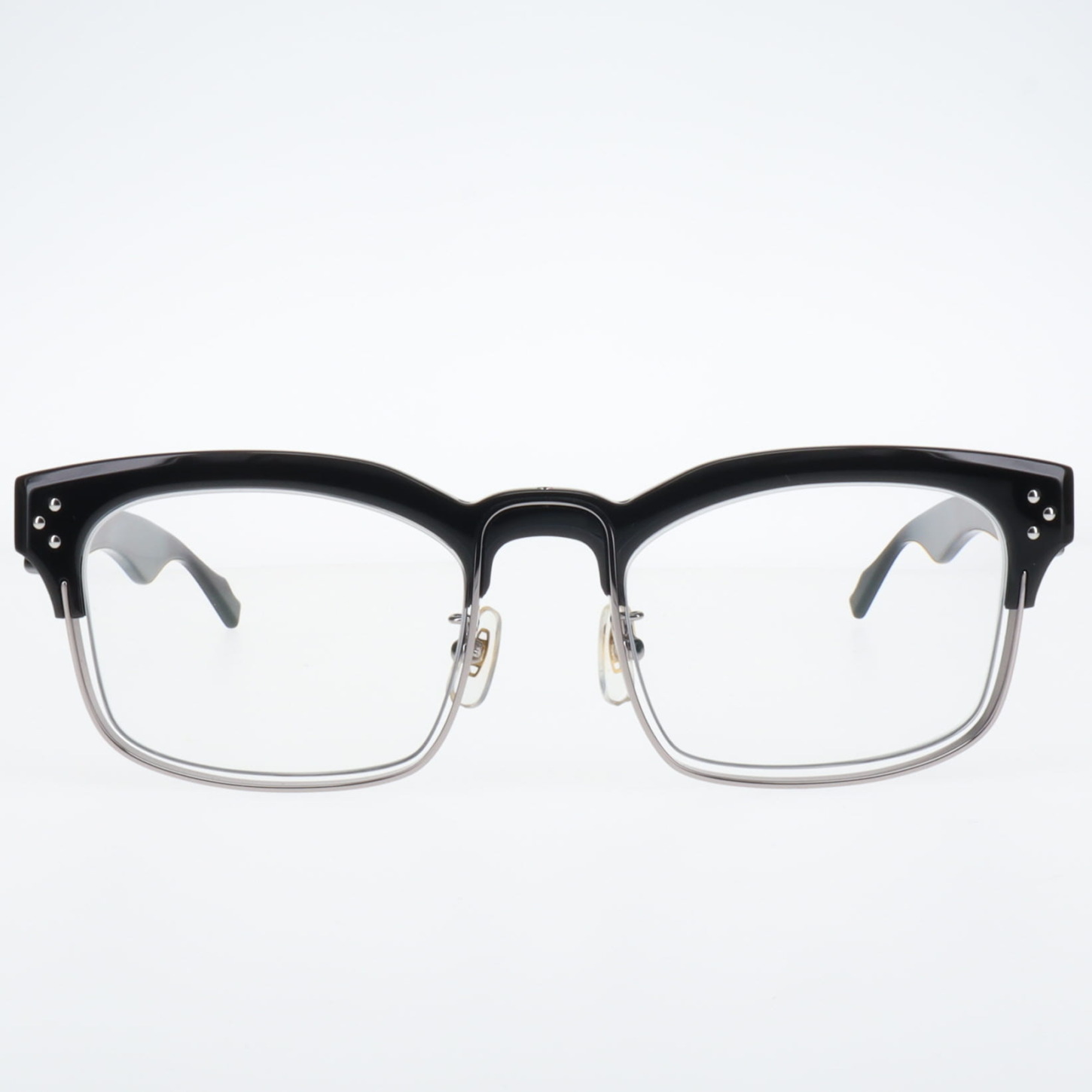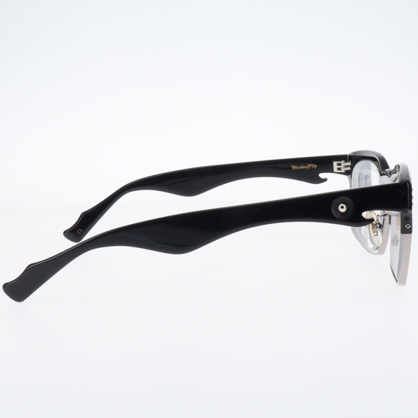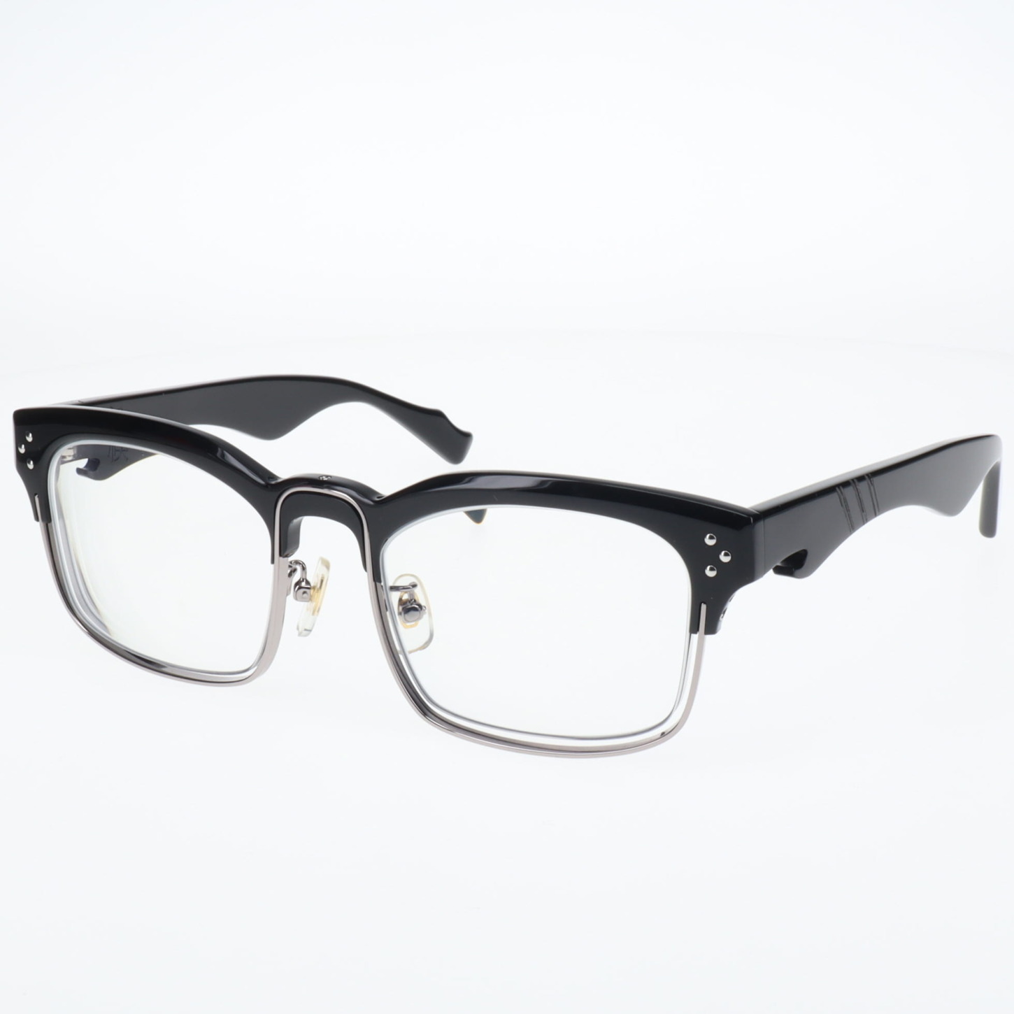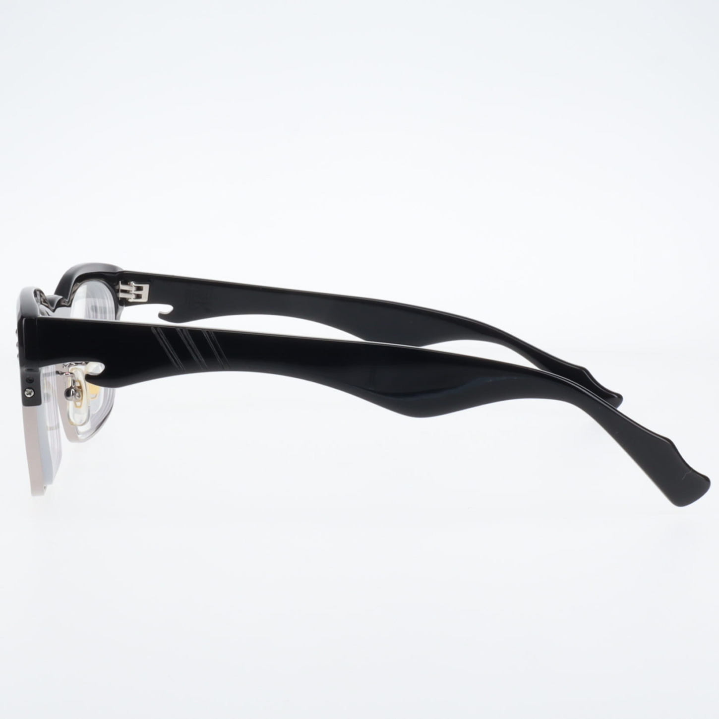 カスタム018 2026.02.09 フレーム:禊 C.1 カスタム: スタッズ , スクラッチライン , クレーター 左右テンプルにワンポイントを施したカスタム右テンプルにはクレーターとスタッズを左テンプルにはスクラッチラインが入っている スタッズ GALLERYアーカイブ PREVIOUS NEXT